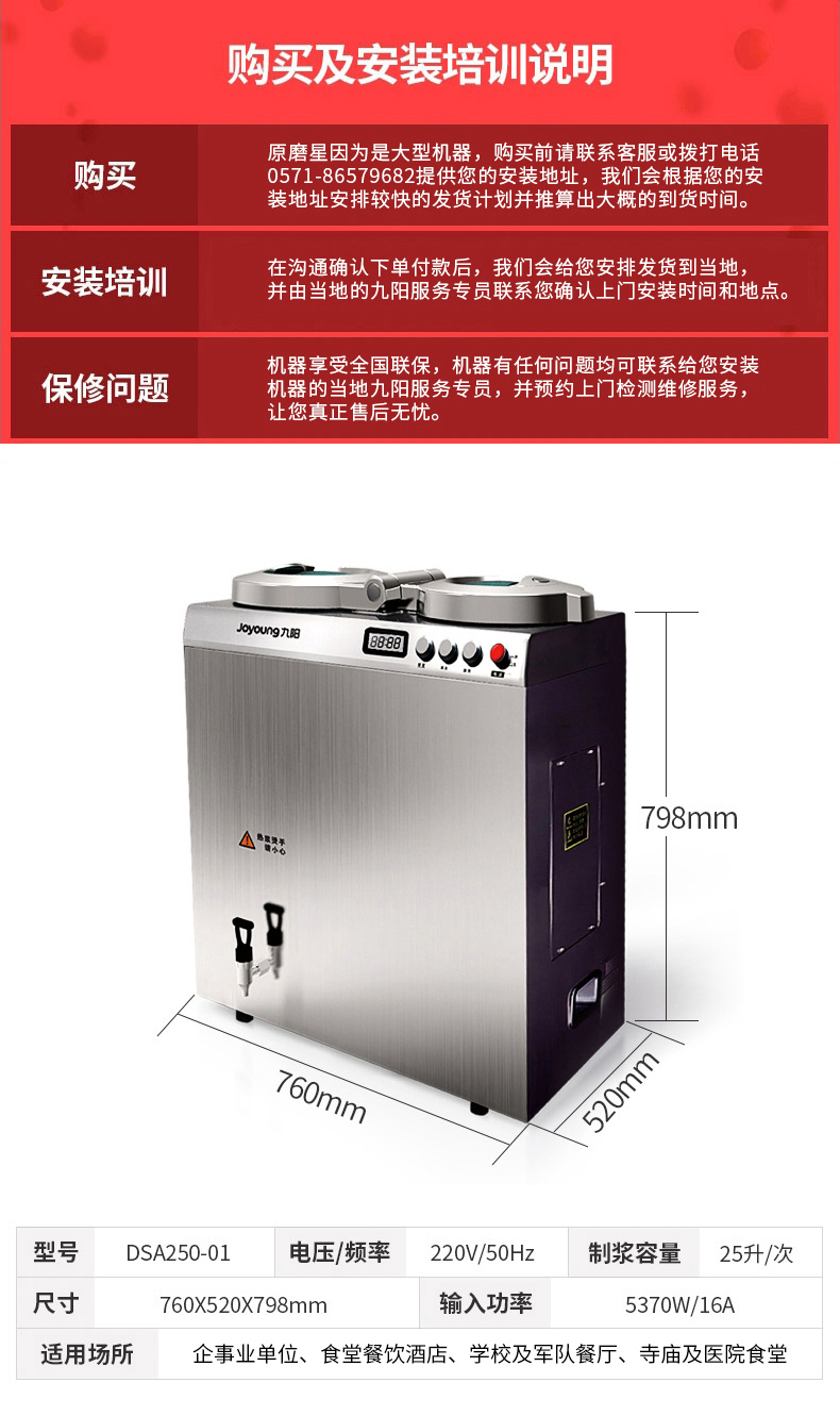 九阳商用豆浆机大容量全自动大型现磨磨浆机25升适用于酒店餐厅食堂,大容量 智能全自动 可单独清洗